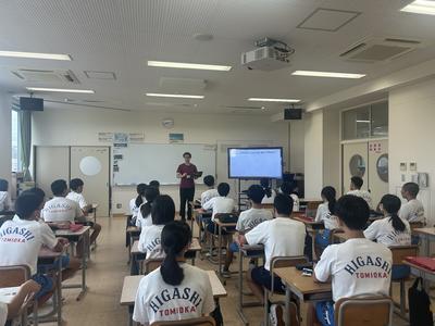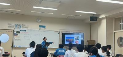 シド先生からは、夏休み中の楽しかった思い出について、たくさんの話をしていただき、生徒たちは、給食を食べながら、シド先生の話に聴き入っていました。